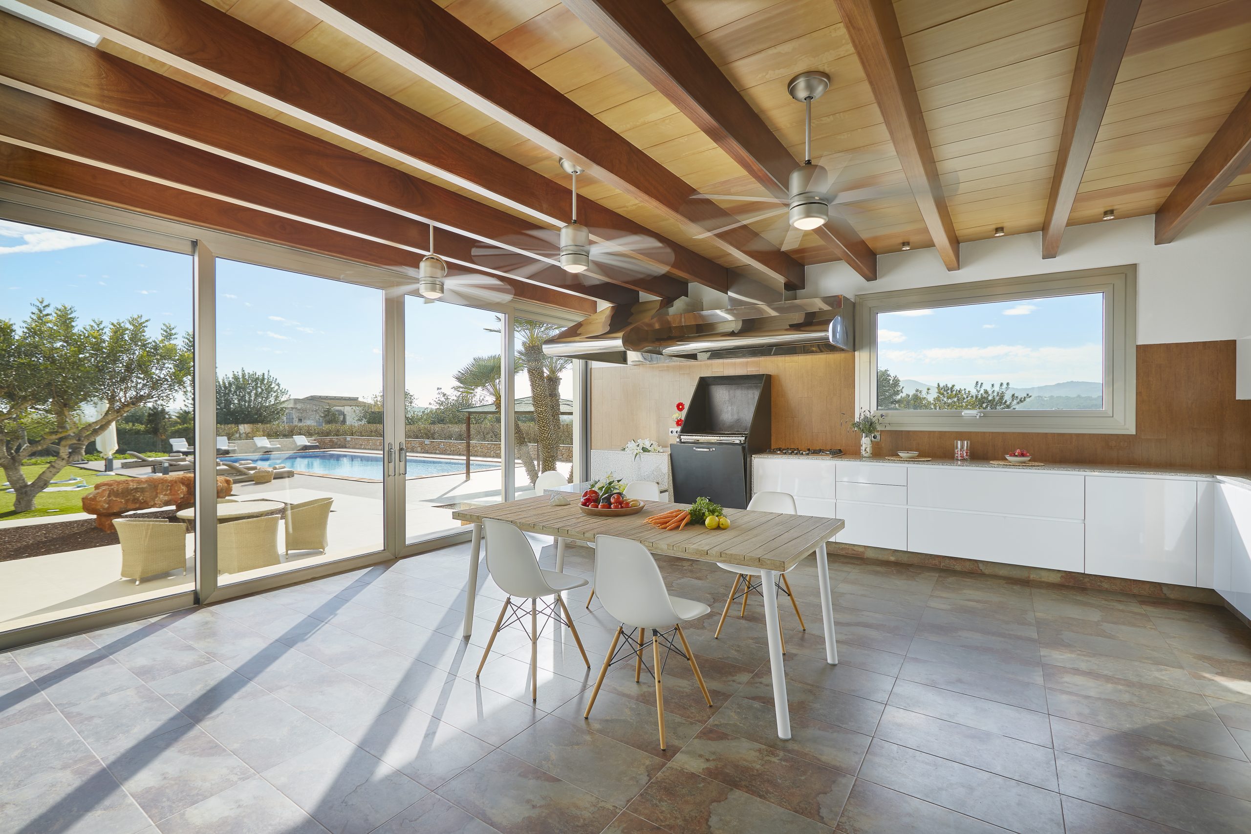 outdoor/indoor dinning area and BBQ.